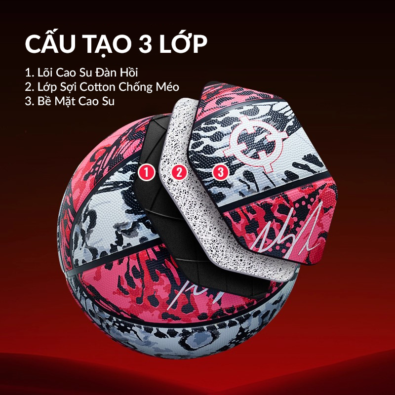 Cấu trúc lõi tối ưu cho độ nảy tiêu chuẩn, hỗ trợ dribble ổn định trên sân bê tông. Bóng không bị “nảy lò xo” như các dòng giá rẻ, tạo cảm giác dễ điều khiển hơn.