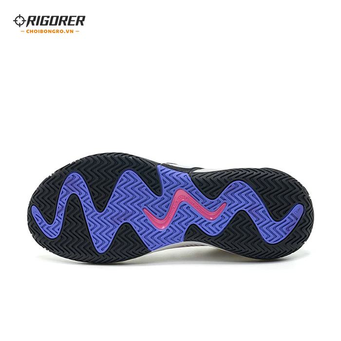 Hoa văn xương cá cải tiến bằng cao su bám sàn, tối ưu độ ma sát trên cả sân gỗ và sân ngoài trời. Rãnh flex đặt theo trục chuyển hướng hỗ trợ cắt/đổi hướng mượt; cao su dày hơn ở vùng chịu lực chính tăng độ bền và chống mòn.