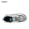 Upper mesh kỹ thuật thoáng khí cho cảm giác nhẹ và mát, kết hợp phủ TPU ở mũi – má – gót để chống mài và giữ form. Cổ giày ôm mềm, giảm cấn; lưỡi gà dày vừa phải tăng thoải mái khi siết dây.