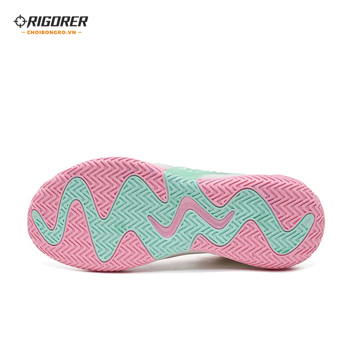 Hoa văn xương cá cải tiến bằng cao su bám sàn, tối ưu độ ma sát trên cả sân gỗ và sân ngoài trời. Rãnh flex đặt theo trục chuyển hướng hỗ trợ cắt/đổi hướng mượt; cao su dày hơn ở vùng chịu lực chính tăng độ bền và chống mòn.